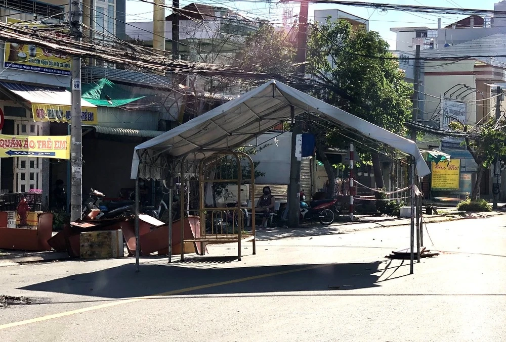 Một chốt kiểm soát vẫn còn người trực để kiểm soát người từ nơi còn thực hiện theo Chỉ thị 16 vào khu dân cư.