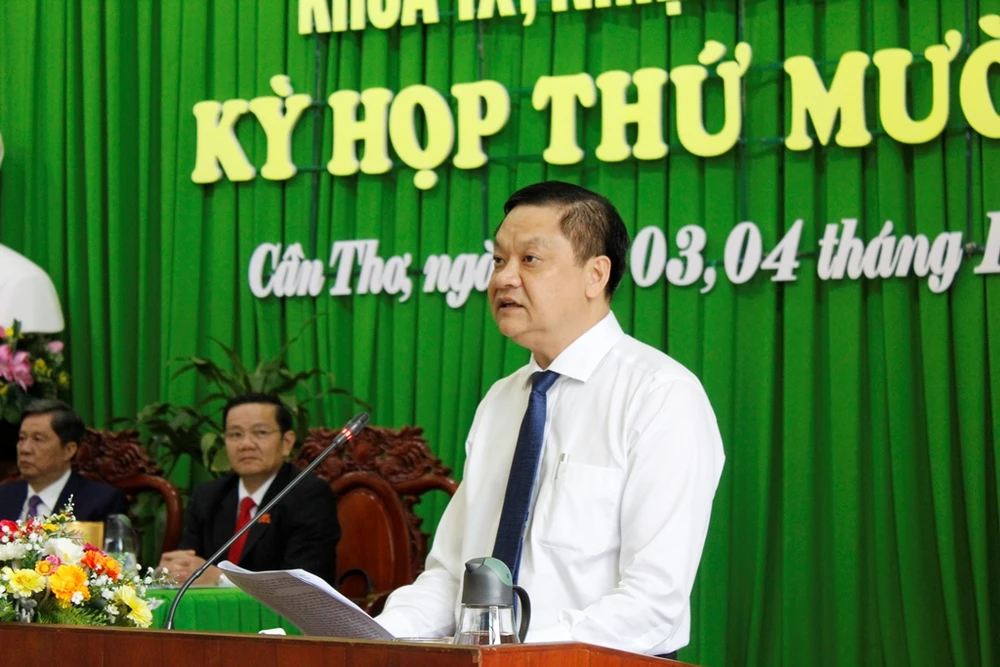 Phó Chủ tịch UBND TP Cần Thơ Dương Tấn Hiển trả lời chất vấn tại kỳ họp 19 HĐND TP Cần Thơ. Ảnh: NHẪN NAM