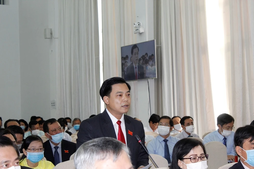 Đại biểu Thiều Quang Thân nêu câu hỏi chất vấn tại kỳ họp 19 HĐND TP Cần Thơ. Ảnh: NHẪN NAM