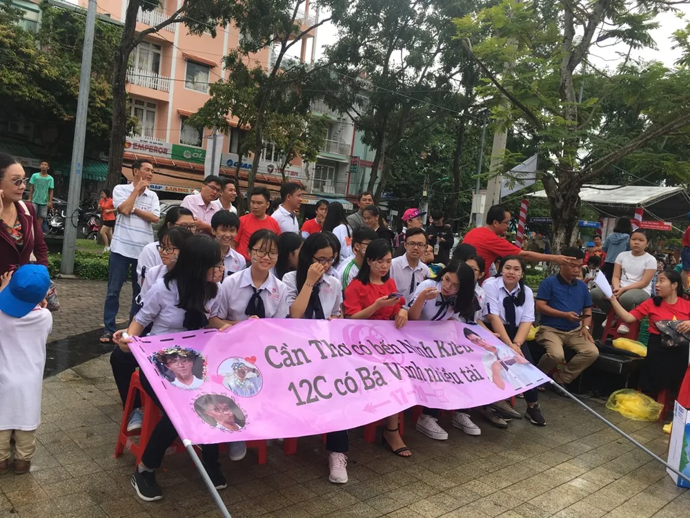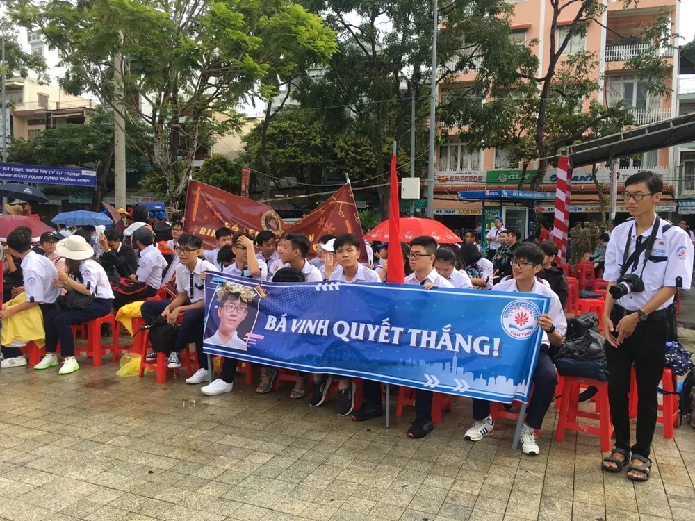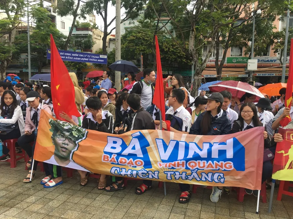 Theo thầy Nguyễn Văn Hồng - Phó Giám đốc Sở GD&ĐT TP, hôm nay có 3.000 học sinh thuộc năm trường THPT đã đến cổ vũ cho Vinh. Bên cạnh đó, lãnh đạo Thành ủy, HĐND, UBND TP cùng lãnh đạo các sở, ngành cũng có mặt tại Công viên Lưu Hữu Phước để cổ vũ cho niềm tự hào Nguyễn Bá Vinh.