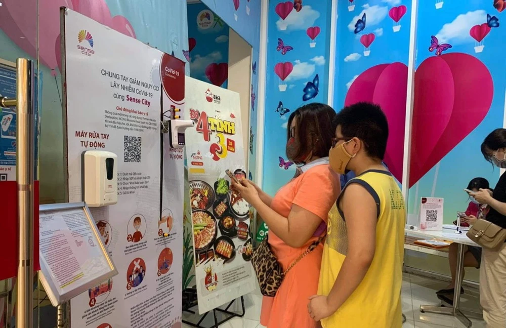 Người dân thực hiện quét mã QR khai báo y tế khi vào siêu thị ở TP Cần Thơ. Ảnh: HẢI DƯƠNG
