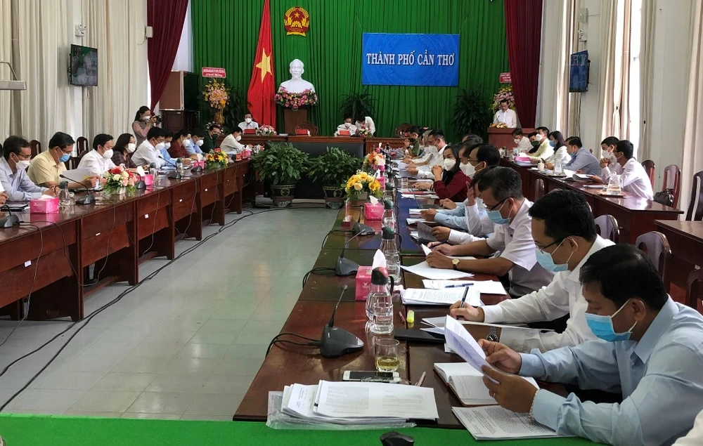 Lãnh đạo UBND TP Cần Thơ và các sở, ngành trong một cuộc họp của TP. Ảnh: NHẪN NAM
