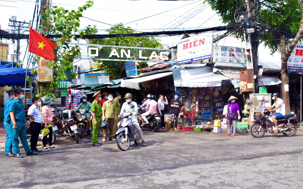 Cơ quan chức năng phường Tân An kiểm tra tại hai chợ trên địa bàn, lập biên bản sáu trường hợp không đeo khẩu trang nơi công cộng. Ảnh: TN