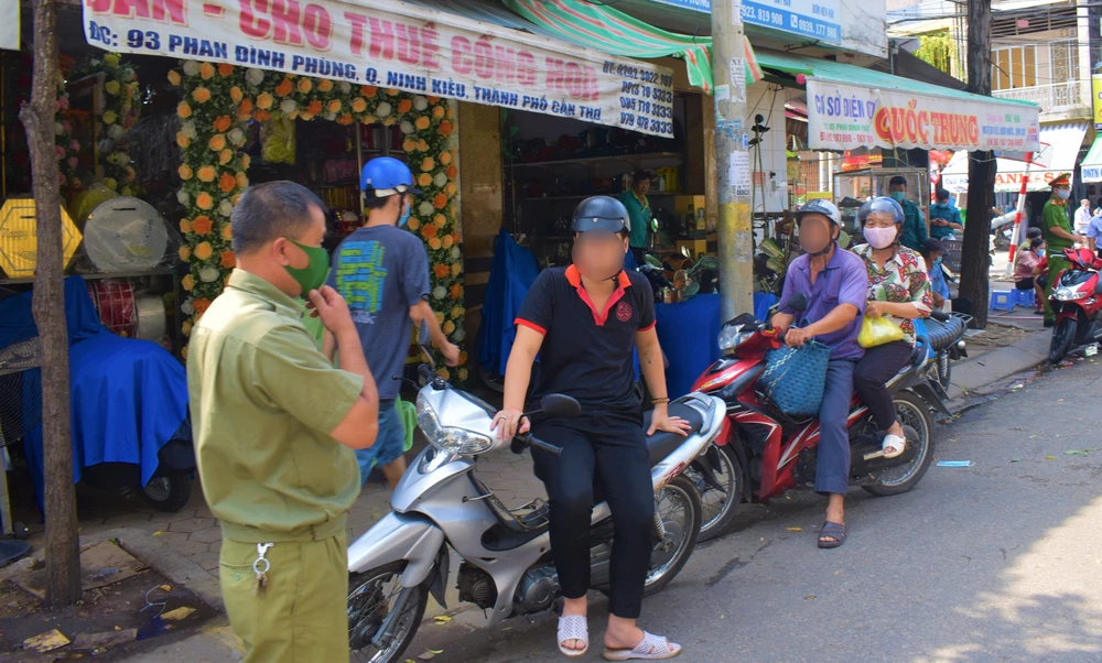 Ngày 3-5, ba phường trung tâm của quận Ninh Kiều là Tân An, Cái Khế và An Hòa đã ra quân xử phạt người không đeo khẩu trang nơi công cộng.
