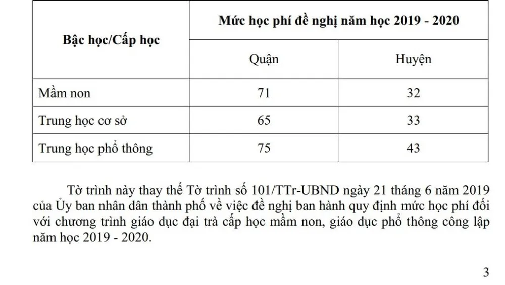 Vì vậy, với điều kiện kinh tế, khả năng đóng góp thực tế của người dân và để hỗ trợ cho người dân, tránh những tác động đến tâm lý trong bối cảnh đã nêu trên, UBND TP đề xuất mức học phí… giữ nguyên như năm 2018-2019.