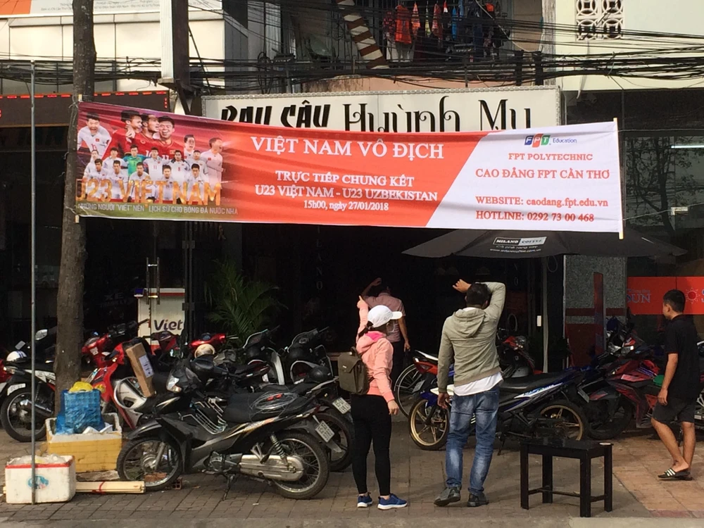 Cả trăm quán cà phê ở quận trung tâm Ninh Kiều, TP Cần Thơ đã treo băng rôn, sắp xếp bàn ghế… Tại Cần Thơ, người hâm mộ bóng đá nếu không thích ngồi ở các quán cà phê hay ở nhà xem bóng đá thì có thể hòa mình ở các điểm đặt màn hình lớn tại Công viên kè Sông Hậu, Công viên Lưu Hữu Phước và hội trường ĐH Cần Thơ.