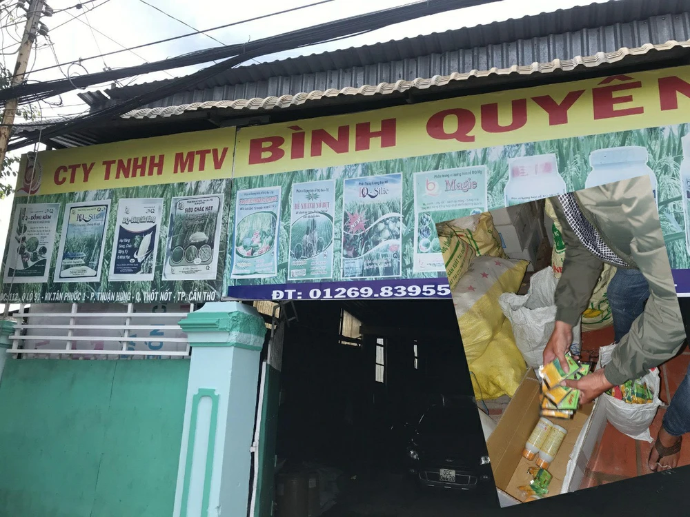 Chi nhánh công ty của vợ chồng bị can được phát hiện có nhiều loại phân bón dỏm. Ảnh: HD