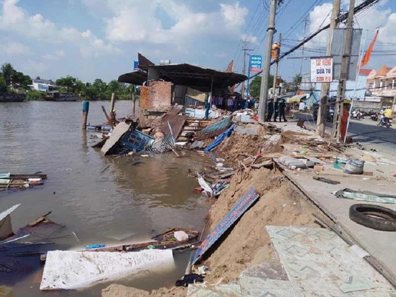 Trước đó, khoảng 11 giờ ngày 15-4, tại ấp Vĩnh Lân, xã Vĩnh Trinh, huyện Vĩnh Thạnh, (đoạn Kênh 7 cập tuyến QL80) đã xảy ra vụ sạt lở bờ sông nghiêm trọng với chiều dài 29,5 m. Theo đó, vụ sạt lở đã nhấn chìm 4 căn nhà của dân, ước tính tổng thiệt hại trên 1 tỉ đồng. Rất may vụ sạt lở không gây thiệt hại về người.