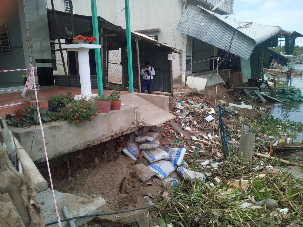Ngày 13-8, lãnh đạo UBND TP Cần Thơ cùng các sở, ngành đi kiểm tra thực tế để tìm ra nguyên nhân để có giải pháp khắc phục tình trạng sạt lở bờ sông tại quận Ô Môn (TP Cần Thơ).