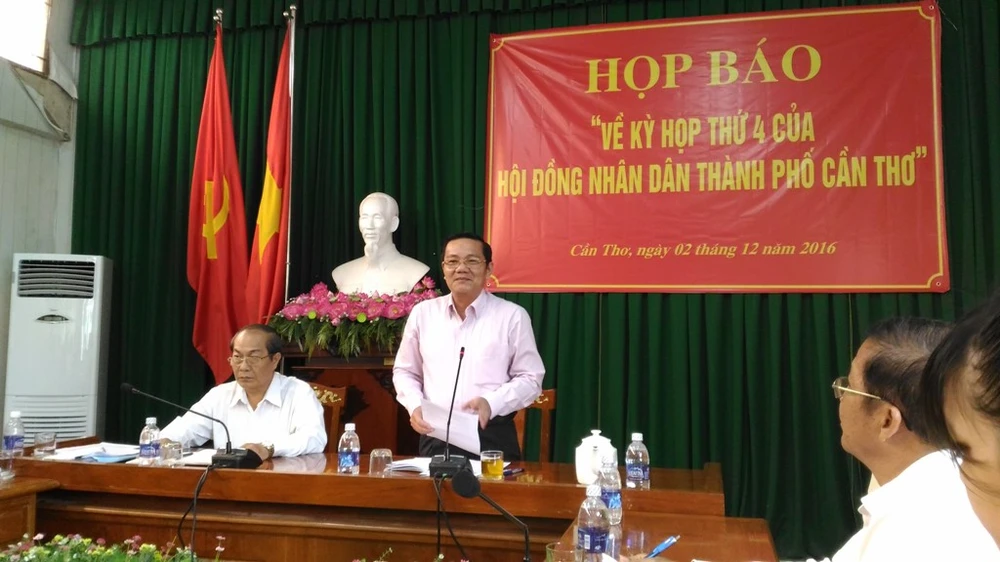 Phó Chủ tịch HĐND TP Cần Thơ Nguyễn Thành Đông thông tin về kỳ họp tại buổi họp báo. Ảnh: N.NAM