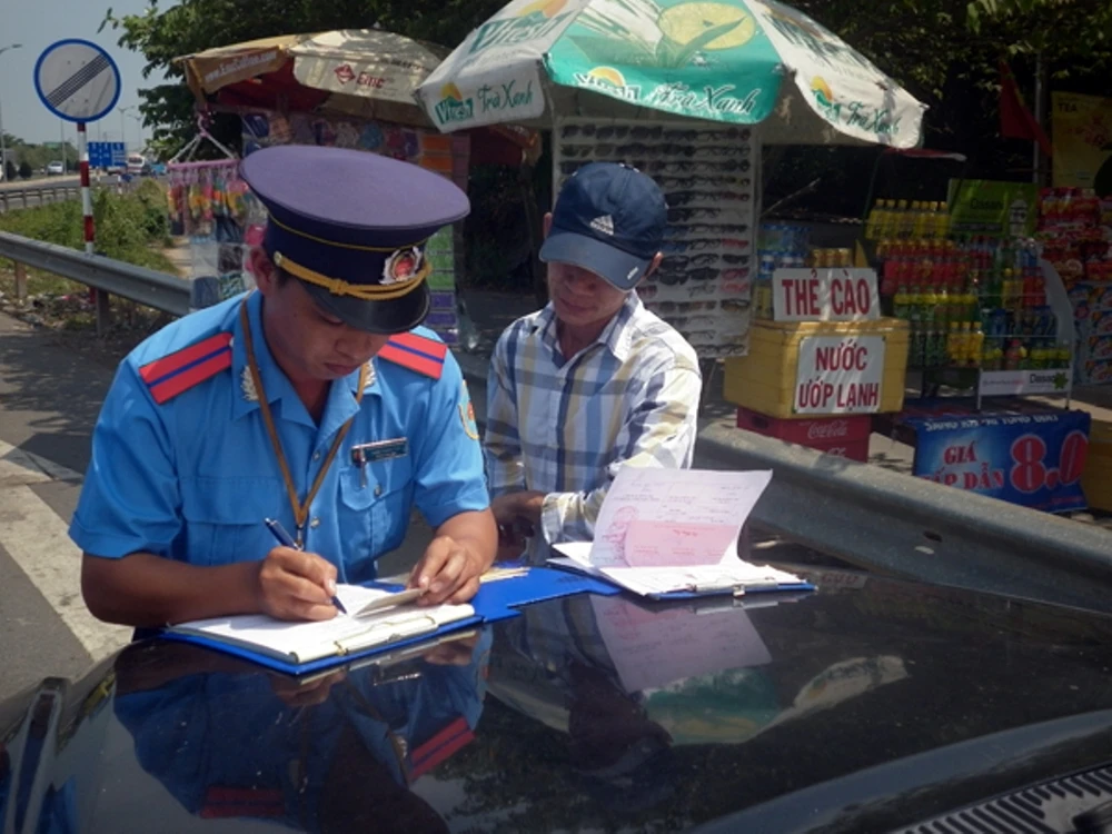 Cán bộ Thanh tra Sở GTVT Cần lập biên bản các trường hợp vi phạm. Ảnh: Gia Tuệ.