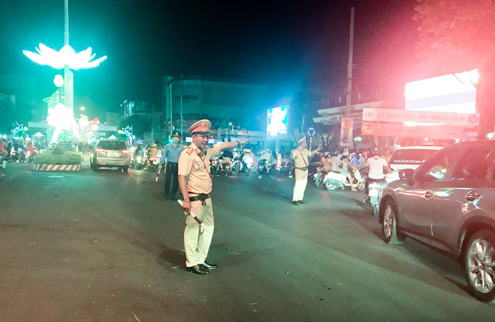Lực lượng chức năng tổ chức phân luồng đảm bảo ATGT dịp Tết Nguyên đán Canh Tý. Ảnh: BT