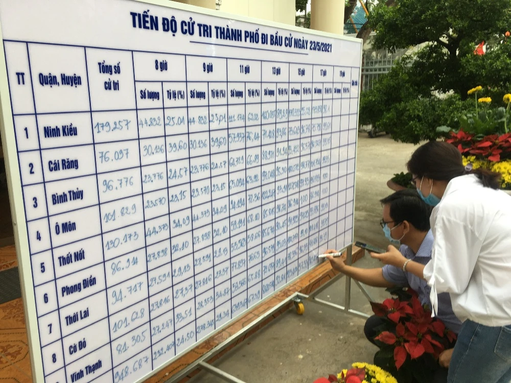Theo Ủy ban Bầu cử TP Cần Thơ, tính đến 17 giờ chiều ngày 23-5, tỉ lệ cử tri trên toàn địa bàn TP đi bầu cử đạt 99,45%.