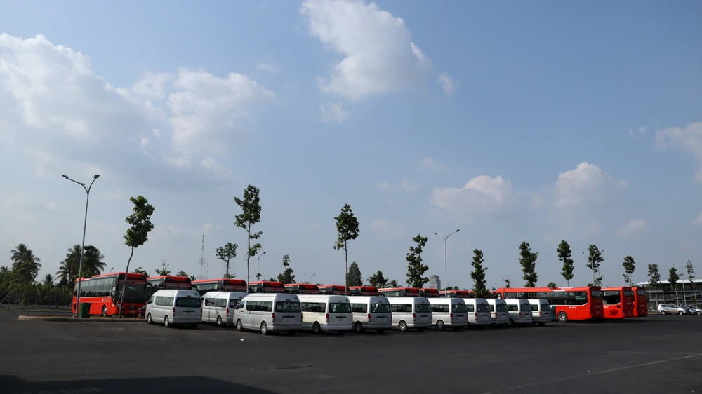 Các doanh nghiệp kinh doanh vận tải tuyến cố định tiếp tục tạm dừng hoạt động đến hết ngày 22-4. Ảnh: CHÂU ANH
