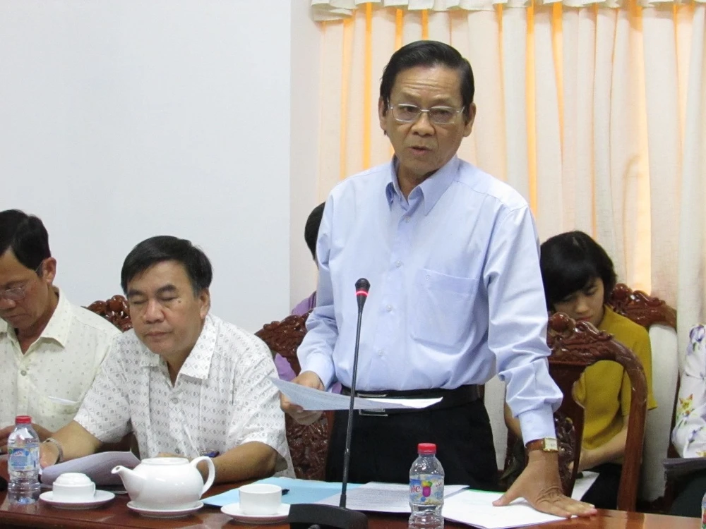 Ông Lê Tấn Nẫm thông tin về tình hình DN lỗ trên bàn TP Cần Thơ tại cuộc họp chiều 2-3. Ảnh: NN