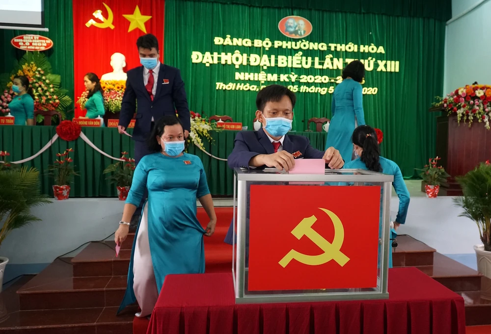 Các đại biểu bỏ phiếu bầu Ban chấp hành Đảng bộ phường Thới Hòa khóa XIII, nhiệm kỳ 2020-2025. Ảnh: NAM GIAO
