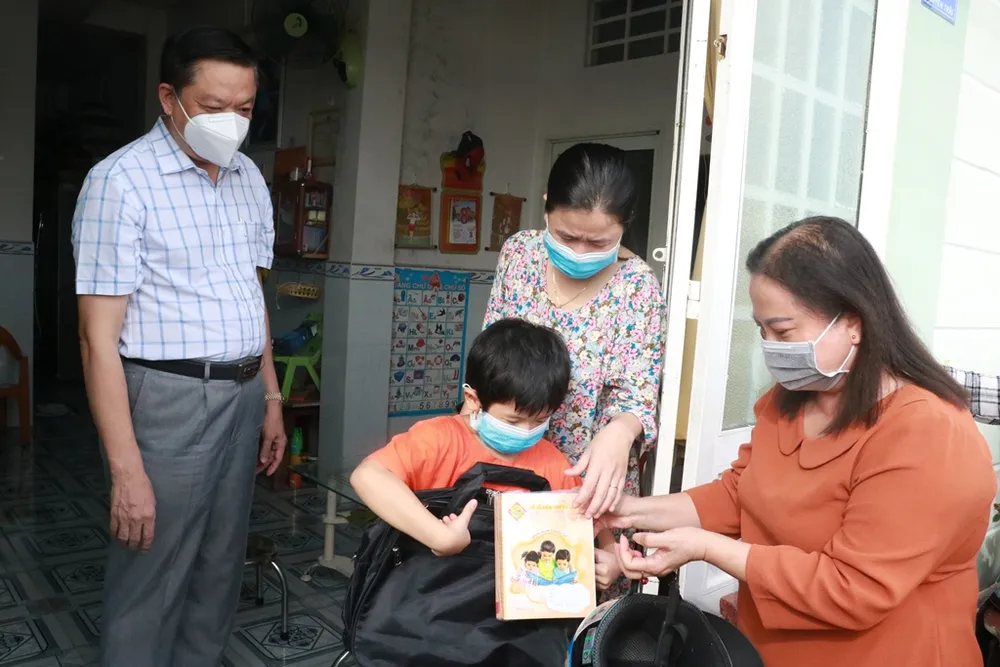 Dịp này, đại diện lãnh đạo TP và sở, ngành đã đến thăm, động viên các em HQT (ngụ quận Ninh Kiều) mồ côi cha, mẹ em tham gia lực lượng tuyến đầu chống dịch; hai anh em NHTV và NHGB (ngụ huyện Phong Điền) mồ côi cha, mẹ đang là F0 điều trị tại TP.HCM.