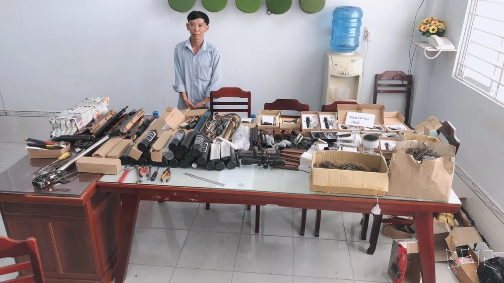 Lực lượng chức năng phát hiện và thu giữ số lượng lớn linh kiện súng săn gồm: 17 báng gỗ súng hơi truyền thống CBG, 16 ống kính ngắm hồng tâm Discovery, hai nòng súng săn Sumo, một hộp đạn chì, tám ốp lót sún, bốn tay cầm súng, hai bá súng... cùng nhiều tang vật liên quan.