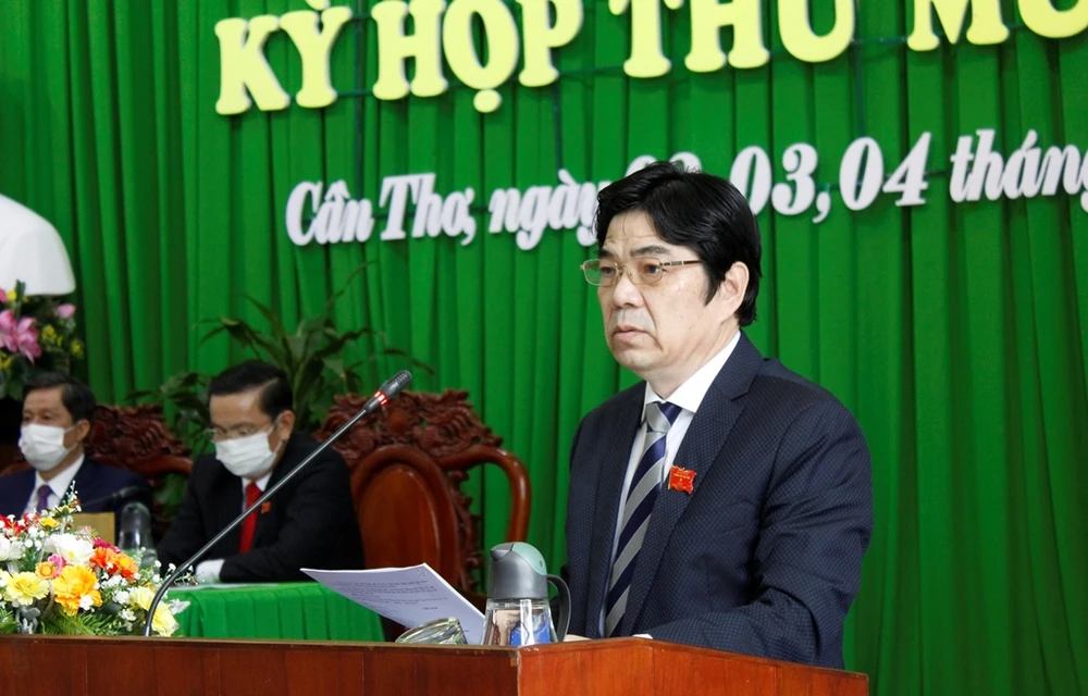 Ông Nguyễn Văn Sử đọc tờ trình về danh mục thu hồi đất của TP Cần Thơ năm 2021. Ảnh: NHẪN NAM