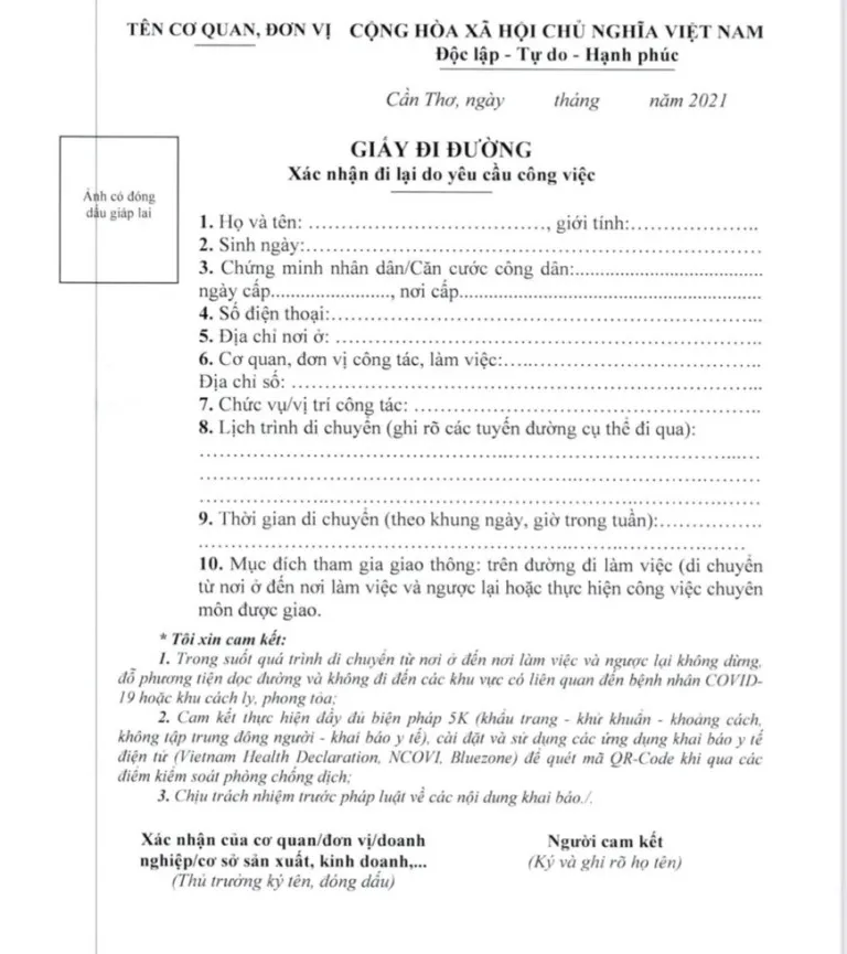 Mẫu giấy đi đường theo mẫu đính kèm Công văn 3056.