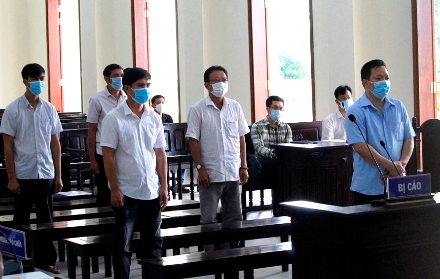 Các bị cáo đang nghe VKS công bố cáo trạng tại phiên tòa ngày 6-1. Ảnh: NHẪN NAM