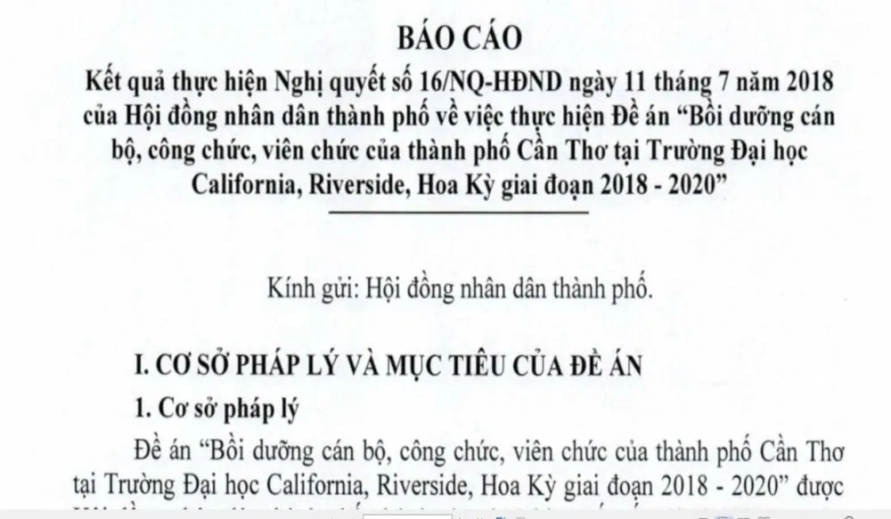 Từ đó, UBND TP đề nghị HĐND TP cho phép dừng thực hiện Đề án “Bồi dưỡng cán bộ, công chức, viên chức của TP Cần Thơ tại Trường Đại học California, Riverside, Hoa Kỳ giai đoạn 2018-2020”.