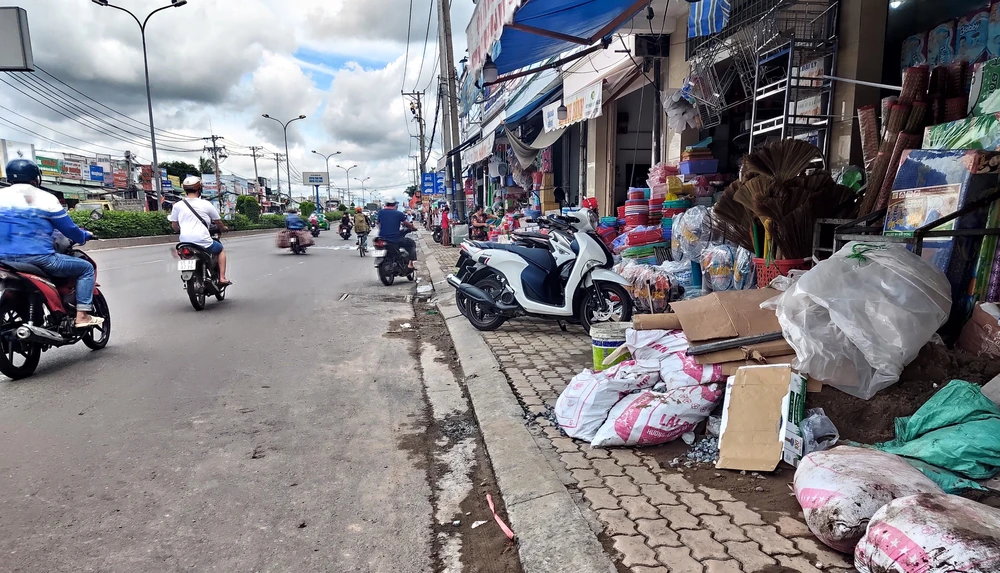 Sau khi đoàn liên ngành nhắc nhở, yêu cầu ký cam kết và giao lại cho địa phương thì tình trạng lấn chiếm vỉa hè, lòng đường lại tái diễn. (Ảnh chụp ngày 13-9)