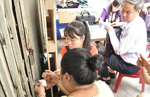 Cục An toàn thực phẩm muốn mở cửa nhưng không được đáp ứng nên đề nghị niêm phong nhà. Ảnh: TÙNG SƠN
