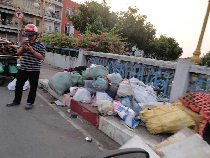 Một số người mua bán ve chai đã dùng mặt cầu làm nơi thu gom, phân loại ve chai sau khi mua về. Tình trạng trên làm mất cảnh quan đô thị, chiếm dụng, xả rác trên lòng đường, lề đi bộ trên cầu.