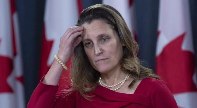 Bộ trưởng Bộ Ngoại giao Canada, bà Chrystia Freeland trong một buổi họp báo ở Ottawa. ẢNH: The Canadian Press