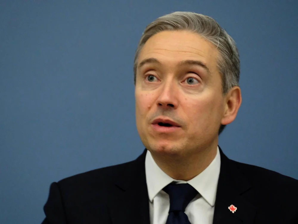 Ngoại trưởng Canada Francois-Philippe Champagne phát biểu trong cuộc họp báo ở Latvia ngày 2-3. Ảnh: REUTERS