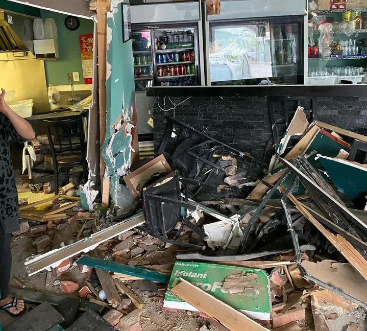 Nhà hàng Pho King sau vụ tông phá. Ảnh: CBC