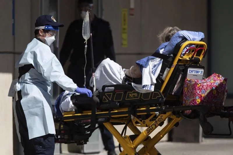 Nhân viên y tế chuyển bệnh nhân COVID-19 đến bệnh viện tại tỉnh British Columbia. Ảnh: AP