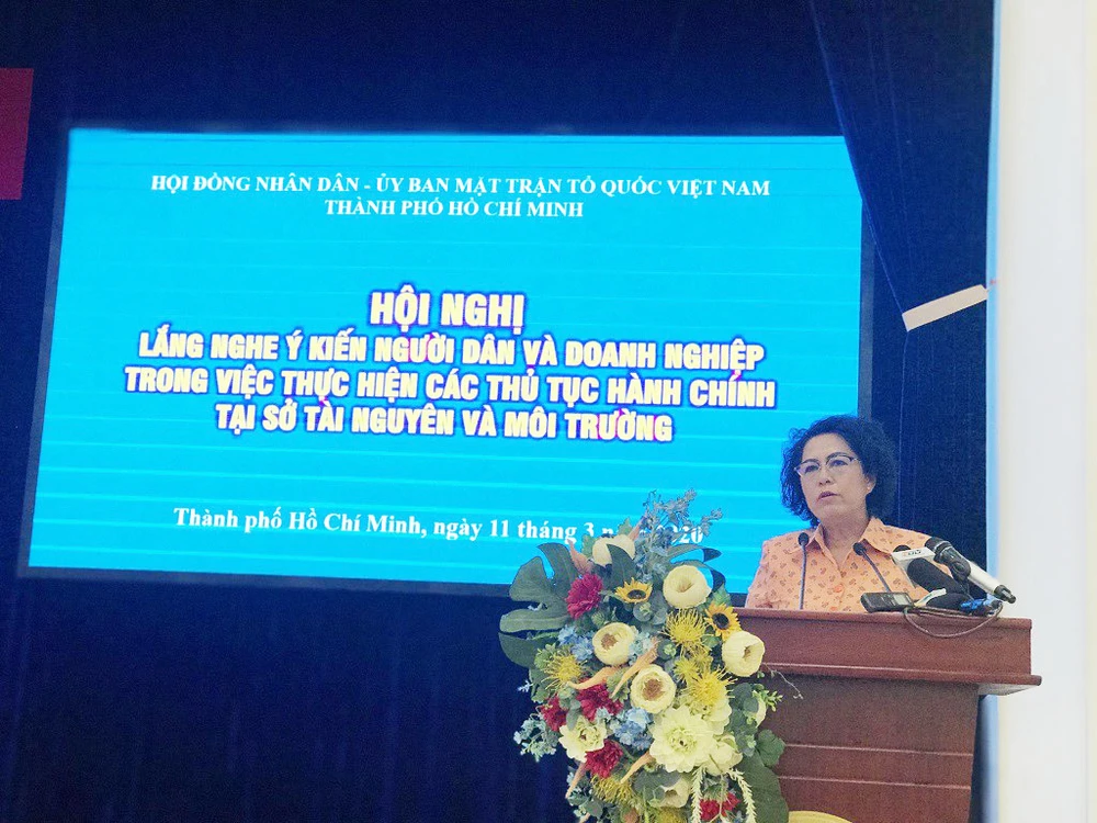 Phát biểu tổng kết hội nghị, Chủ tịch Ủy ban MTTQ Việt Nam TP.HCM Tô Thị Bích Châu nhận định thời gian qua Sở TN&MT có rất nhiều cải tiến, lắng nghe ý kiến của người dân và doanh nghiệp để cải cách thủ tục hành chính.