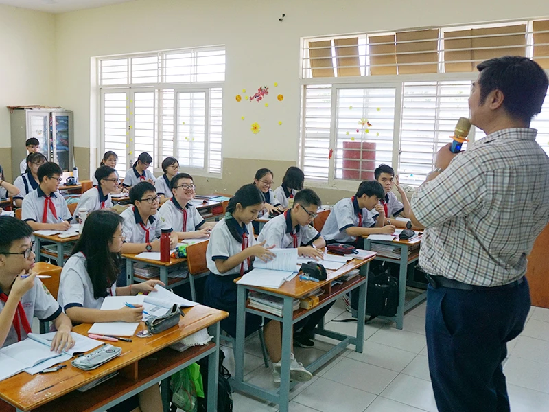 Hiện HS lớp 9 đã thi học kỳ 2, trường sẽ dành một tuần để các em hoàn thành điểm các môn. Đến giữa tháng 6, các em sẽ đổi thời khóa biểu, chuyển qua học tập trung vào ba môn thi. Mỗi lớp sẽ có chuyên đề và giáo án riêng. Đối với lớp khá, giỏi sẽ tăng cường bồi dưỡng đề nâng cao, còn lớp yếu tập trung hoàn thiện kiến thức, kỹ năng.