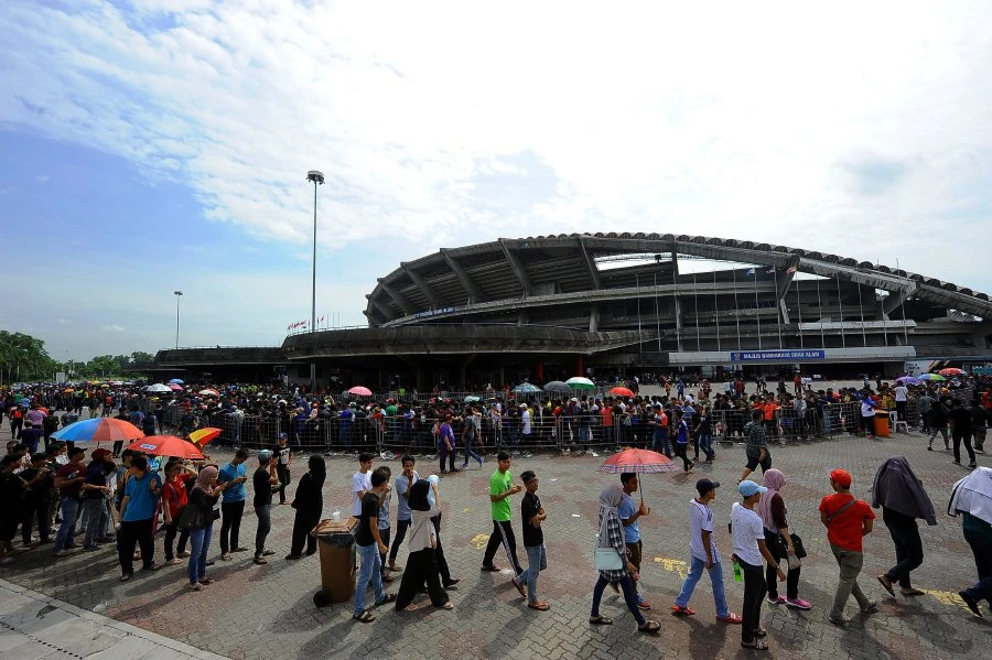 Biển người xếp hàng mua vé ở sân Shah Alam sáng nay.
