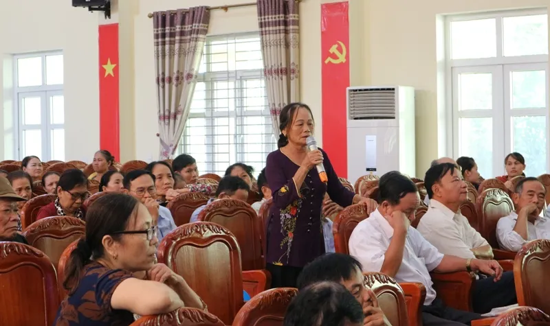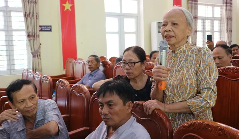 Người dân xã Nghi Phú phát biểu, kiến nghị tại buổi đối thoại.