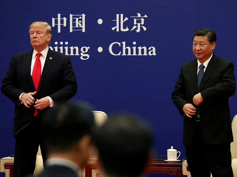 Chủ tịch TQ Tập Cận Bình (phải) và Tổng thống Mỹ Donald Trump trong chuyến thăm Bắc Kinh chính thức của ông vào tháng 11-2017. Ảnh: AFP