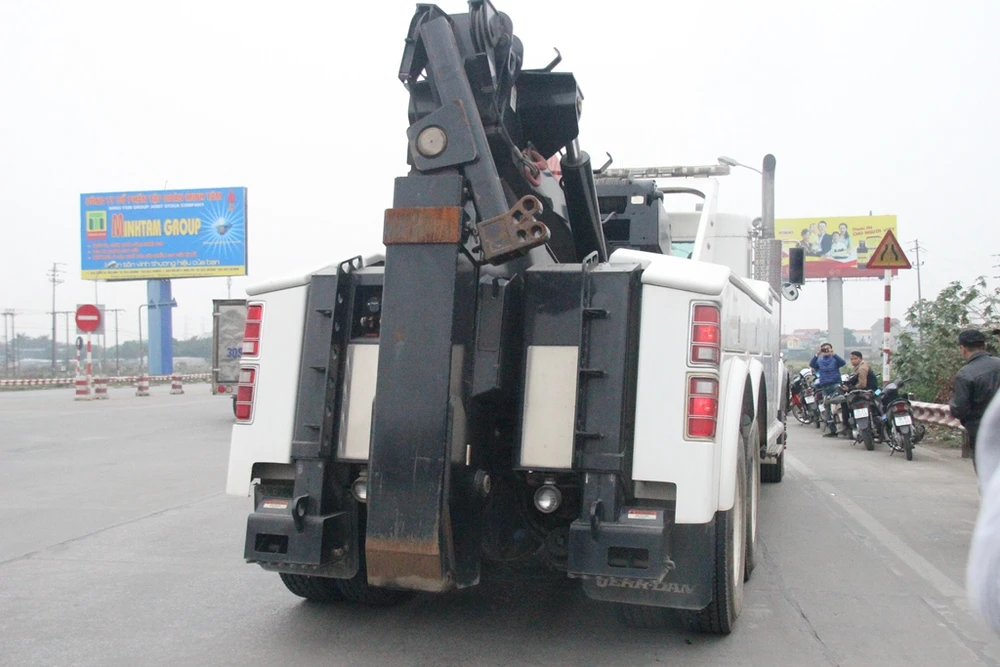 Xe cẩu lớn đã đến trạm quốc lộ 5.