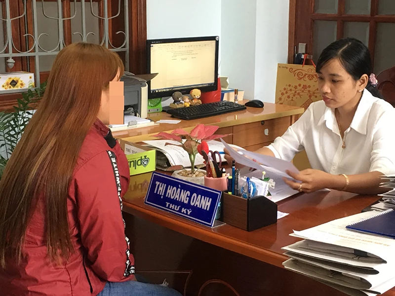 Một cô gái đến tòa để được hướng dẫn làm đơn xin ly hôn với chồng nước ngoài. Ảnh: NHẪN NAM
