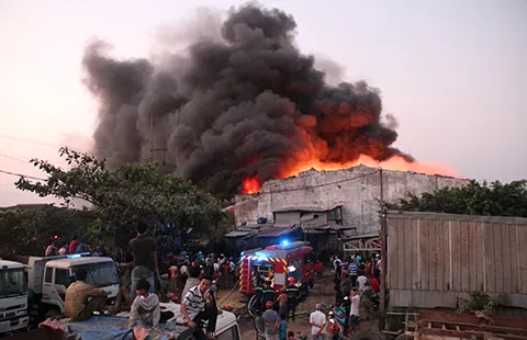 Hiện trường một vụ cháy kho hàng ở Bình Tân (TP.HCM). Ảnh: T.TÂN