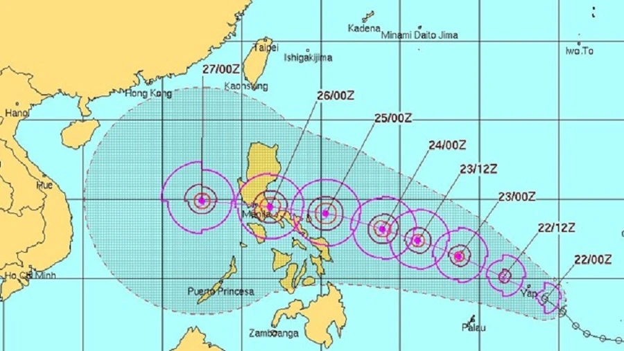 Bão di chuyển theo hướng tây bắc với tốc độ 20-30 km/giờ, đang có xu hướng mạnh dần lên và hướng về phía biển Đông. Cạnh đó, từ ngày 26-12 sẽ có một đợt không khí lạnh mạnh tăng cường.