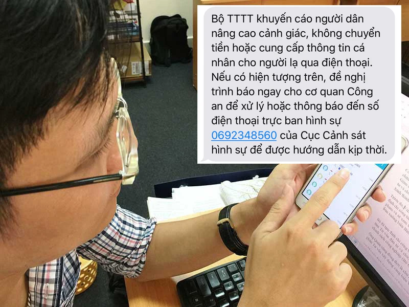 | Bộ TT&TT cảnh báo Bộ TT&TT mới đây đã gửi tin nhắn đến nhiều thuê bao điện thoại. Nội dung tin nhắn nêu rõ: “Bộ TT&TT khuyến cáo người dân cảnh giác, không chuyển tiền hoặc cung cấp thông tin cá nhân cho người lạ qua số điện thoại. Nếu cá nhân nào bắt gặp trường hợp trên, cần trình báo ngay cho cơ quan công an để xử lý hoặc thông báo đến số điện thoại trực ban hình sự của Cục Cảnh sát hình sự, Bộ Công an (số điện thoại 0692348560) để được hướng dẫn kịp thời”. |