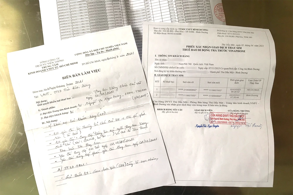Nghi ngờ thông tin SIM của mình bị lộ trong quá trình làm lại SIM, chị H. đến Trung tâm Kinh doanh VNPT Bình Dương tìm hiểu. Lúc này chị mới biết trong ngày 2-3 có một giao dịch thay SIM của mình tại một trung tâm VNPT ở TP.HCM.