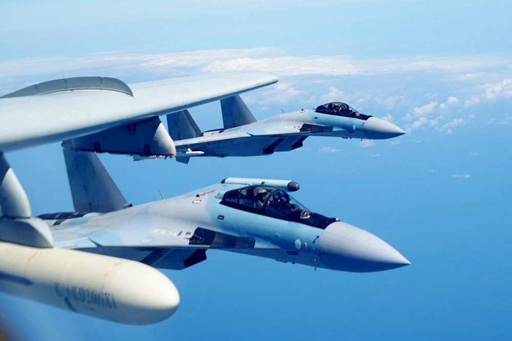 Trung Quốc đã điều máy bay chống ngầm, máy bay chiến đấu và tàu chiến đến phía tây nam và đông nam của Đài Loan. Ảnh: TÂN HOA XÃ