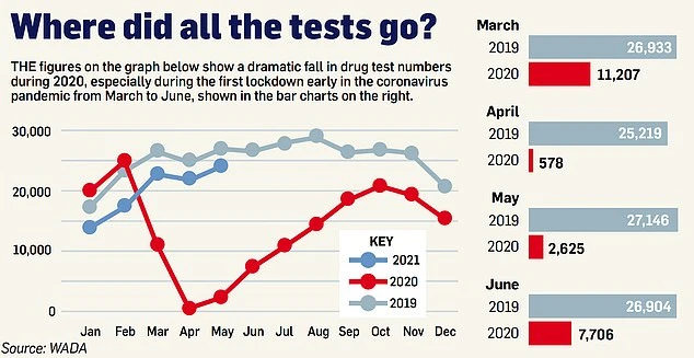 Tờ The Mail nhận định, có lẽ minh chứng rõ nhất về việc COVID-19 “trao thông hành” cho các VĐV đủ điều kiện thi đấu một cách mờ ám là vào tháng 4-2020. Thời điểm này, có khoảng 25.000 cuộc kiểm tra được tiến hành khắp thế giới, chỉ khoảng 1% trong số đó có kết quả dương tính, tương đương 250 vụ gian lận bị phát hiện.