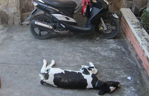 Bò cái sữa 10 ngày tuổi bị nhóm trộm ném xuống đường khi bị truy đuổi. Ảnh: XN