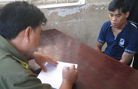 Nguyễn Minh Hiếu, nghi can trộm bò tại trụ sở công an. Ảnh: XN