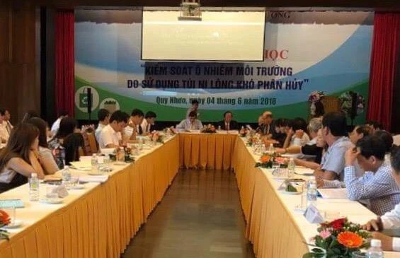 Hội thảo “Kiểm soát ô nhiễm môi trường do sử dụng túi nylon khó phân hủy” do Bộ Tài nguyên và Môi trường và UBND tỉnh Bình Định phối hợp tổ chức tại Quy Nhơn sáng nay, 4-6.