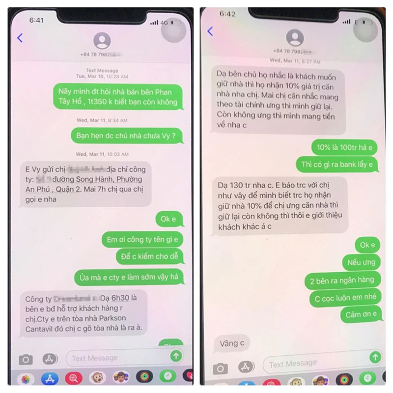 Tin nhắn của nhân viên môi giới gửi khách hàng. Ảnh: NVCC